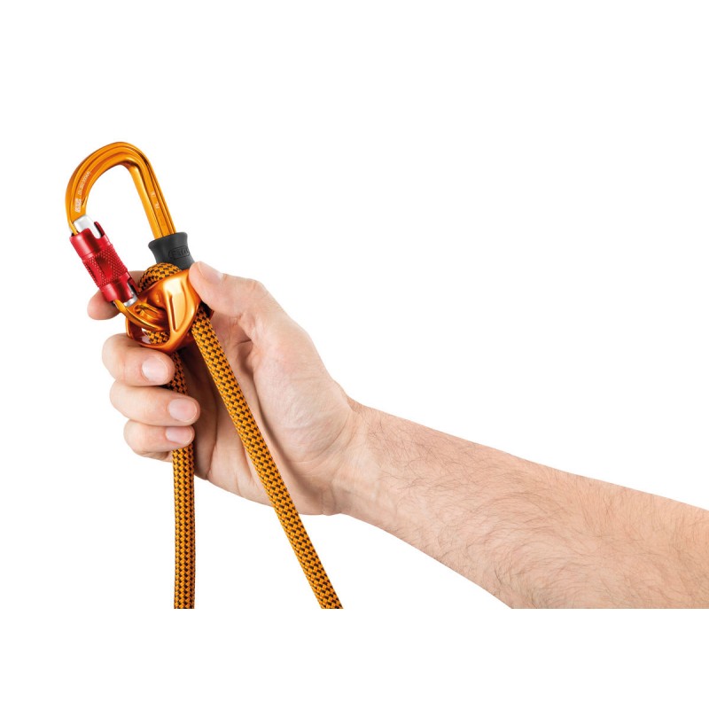 - Durante la progresión por un pasamanos: el cabo fijo y el cabo regulable de la misma longitud permiten un aseguramiento más fácil durante el paso de fraccionamientos.